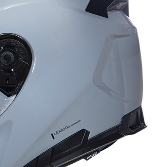 - Ultraweites Visier: farblos, kratzfest, mit Kippmechanismus, der eine größere Ausdehnung des von der Pinlock® abgedeckten Bereichs ermöglicht, wodurch das Risiko des Beschlagens im Helminneren sowie des versehentlichen Öffnens des Visiers verringert wird.