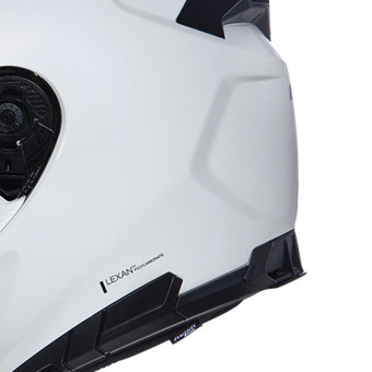 - Ultraweites Visier: farblos, kratzfest, mit Kippmechanismus, der eine größere Ausdehnung des von der Pinlock® abgedeckten Bereichs ermöglicht, wodurch das Risiko des Beschlagens im Helminneren sowie des versehentlichen Öffnens des Visiers verringert wird.