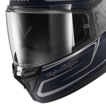 Der integrierte Doppelschirm (farblos und Sonnenblende) wird mit seinem Pinlock (Hochleistungs-Antibeschlagfilm) geliefert und enthält das neue, patentierte Shark-System zum schnellen und werkzeuglosen Entfernen des Schirms.